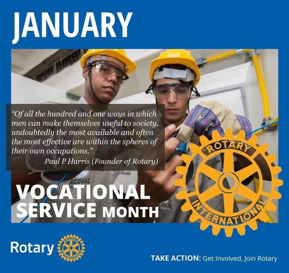 Jag vill passa på att lyfta fram några projekt och personer inom yrkestjänst nu när januari månad går mot sitt slut. Yrkestjänst (vocational service) består dels i att ta med sig Rotarys värderingar ut i yrkeslivet, dels i att ta med sig yrkeslivets kompetenser och kontakter in i Rotary för att göra skillnad. I distriktet är fokus på affärsnätverk, mentorskap och Ung Företagsamhet.